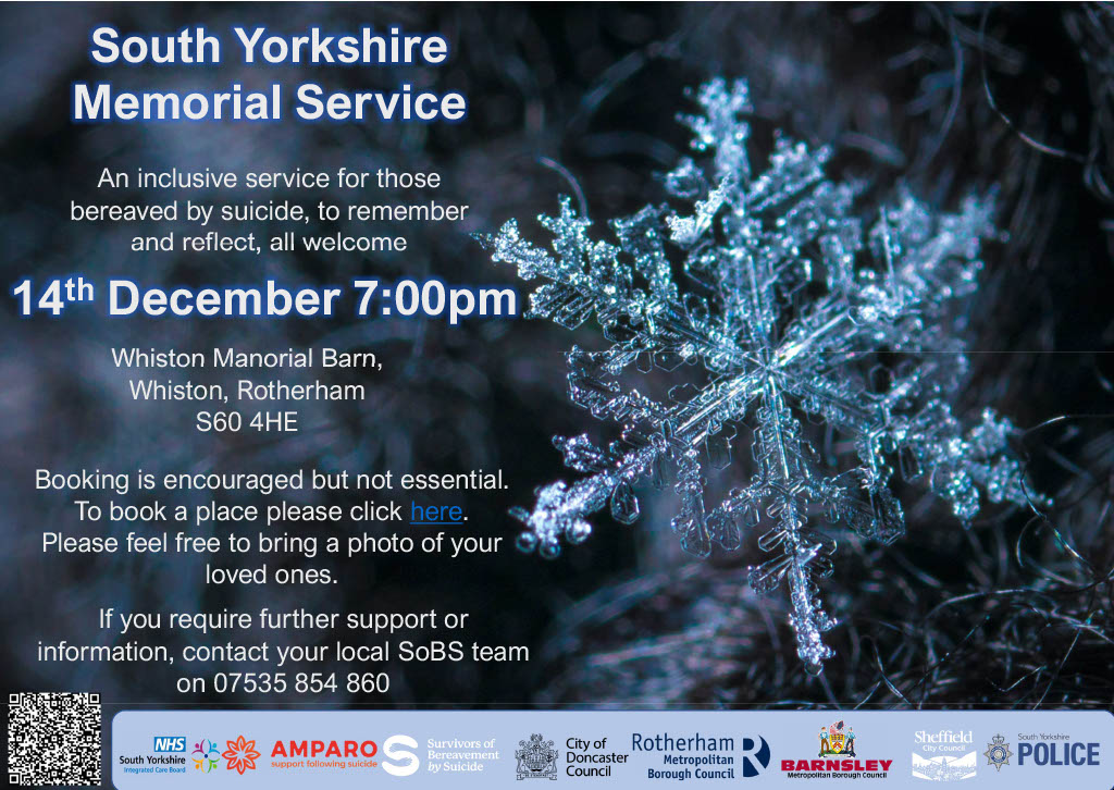 This event is organised by services and colleagues across South Yorkshire, including Survivors of Bereavement by Suicide (SOBS) and Amparo.